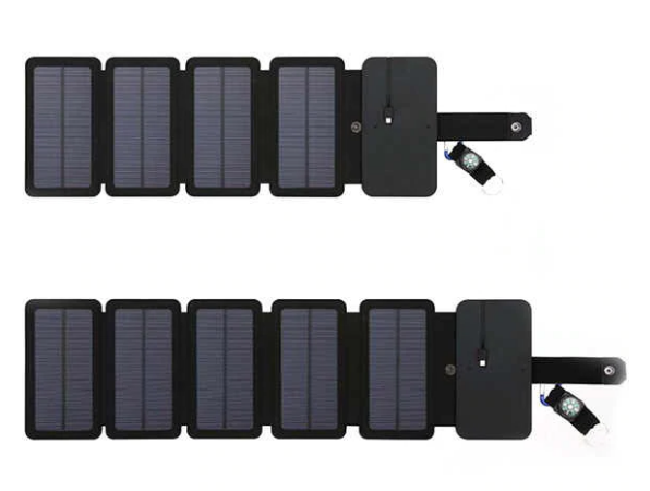 Carregador/Painel solar com 5 painéis dobráveis. Carregador de telemóvel de energia solar ultrafino